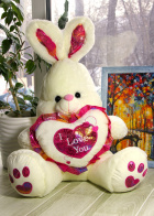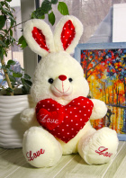 Заяц красные с красным сердцем и надписью 50 СМ (СПИНА) - Цена: 1 200 руб. (розница)