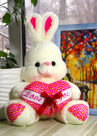 Заяц белый с сердцем в горох 60 см. - Цена: 1 000 руб. (розница)