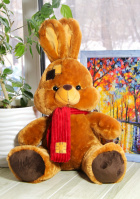 Заяц коричневый с шарфом и заплаткой 60 см. - Цена: 1 000 руб. (розница)