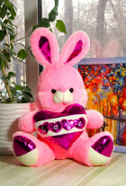 Заяц розовый с блестящим сердцем 60 см. - Цена: 1 000 руб. (розница)
