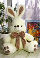 Заяц белый с бантом в полоску 70 см. - Цена: 1 200 руб. (розница)