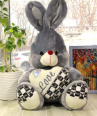 Заяц серый с черно-белым сердцем 90 см - Цена: 1 700 руб. (розница)