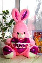 Заяц розовый с блестящим розовым сердцем 85 см. - Цена: 1 450 руб. (розница)