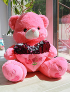 Мишка розовый с сердцем в пайетках 40 см. - Цена: 1 000 руб. (розница)