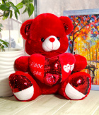 Мишка красный с красным сердцем и пайетками 40 см - Цена: 1 000 руб. (розница)