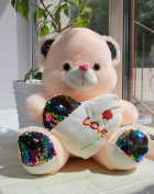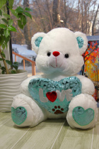Мишка молочный с сердцем в пайетках 40 см. - Цена: 1 000 руб. (розница)