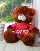 Мишка коричневый в кофте с надписью 50 см. - Цена: 1 200 руб. (розница)