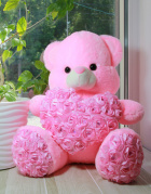 Мишка розовый с сердцем в цветах, 50 см. - Цена: 1 200 руб. (розница)