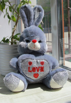 Заяц серый с сердцем блестящим 50 см. - Цена: 900 руб. (розница)