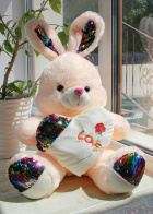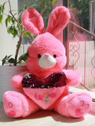 Заяц розовый с сердцем в пайетках 50 см. - Цена: 1 000 руб. (розница)