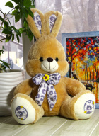 Заяц бежевый с серым бантом 60 см. - Цена: 1 000 руб. (розница)