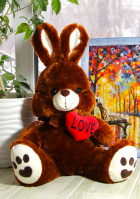 Заяц коричневый с мал.красным сердцем 55 см - Цена: 900 руб. (розница)