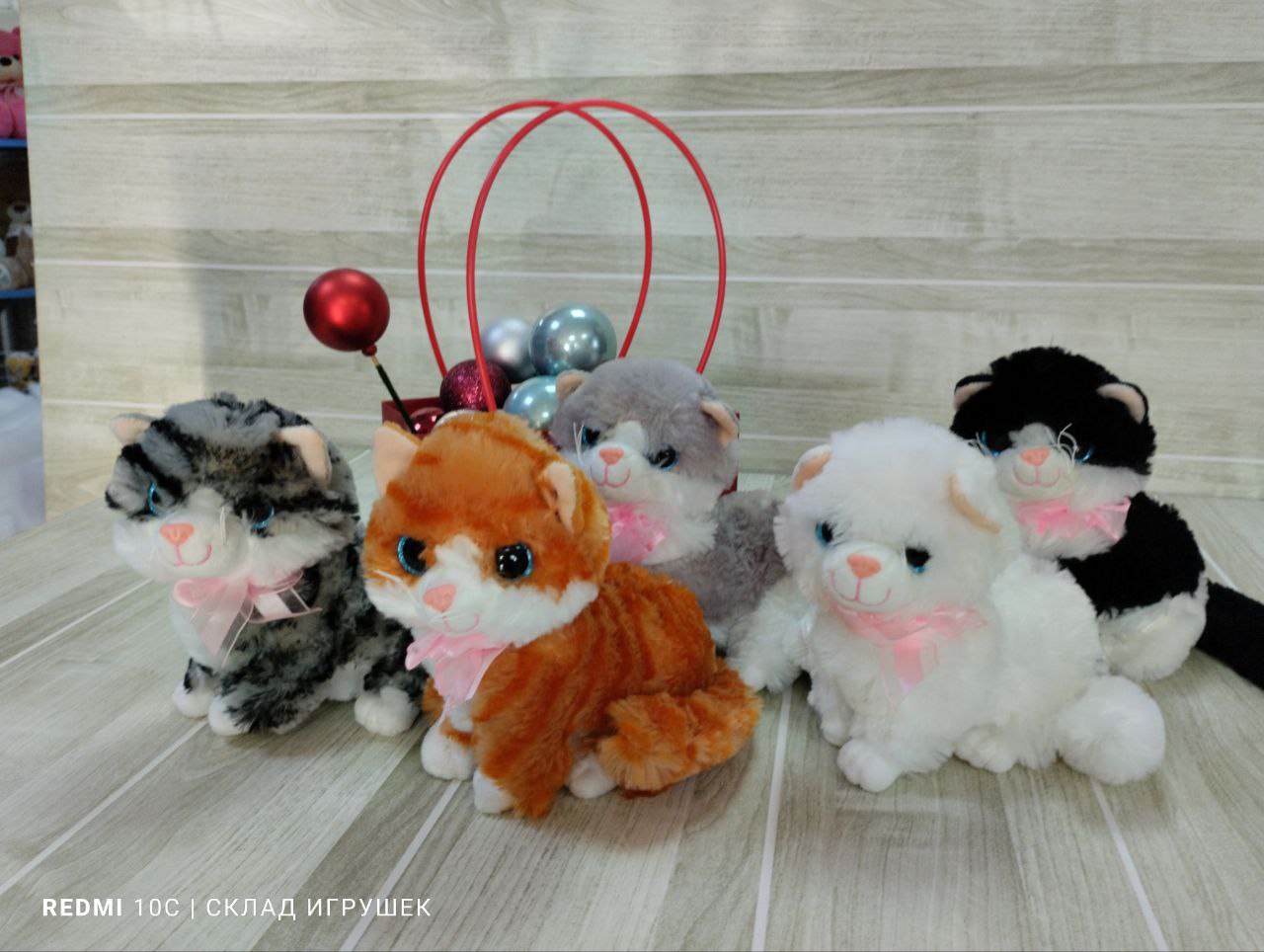 Кошка мягкая, музыкальная сидит боком 20 см. разные расцветки