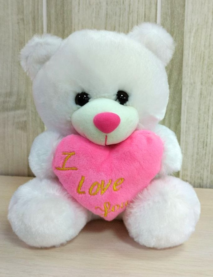 Мишка белый с розовым сердечком 20 см.