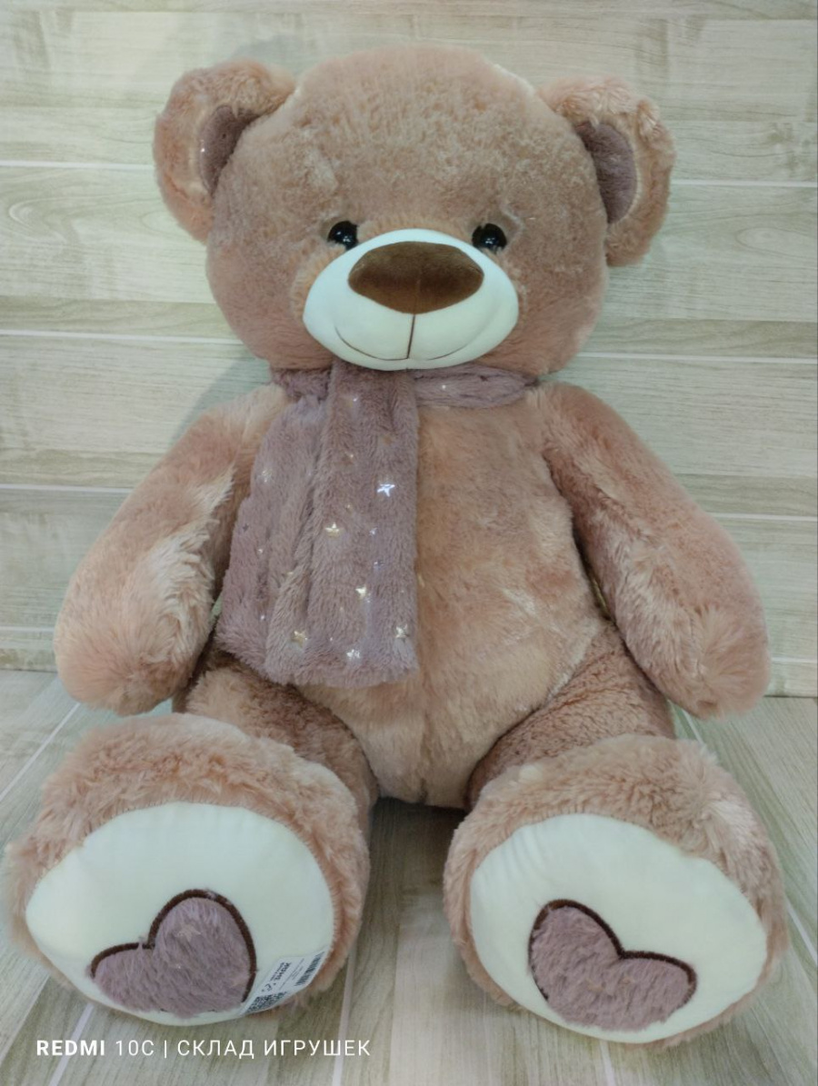 Мишка бежевый с шарфом мягким 60 см.