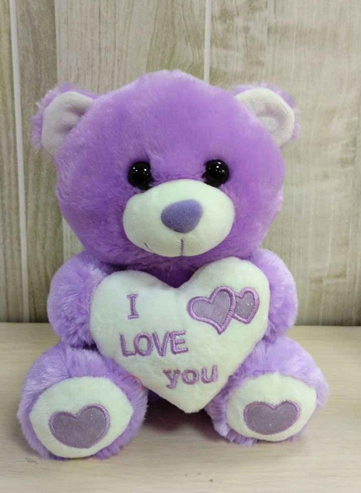 Мишка фиолетовый с сердечком 20 см.