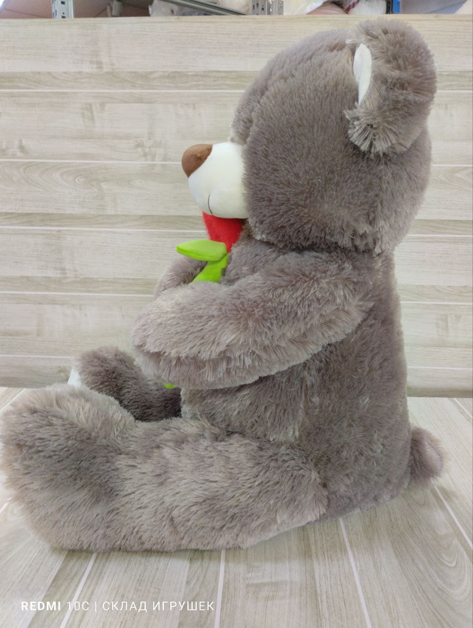 Мишка мохнатый с сердечком-цветком 60 см., 3 цвета