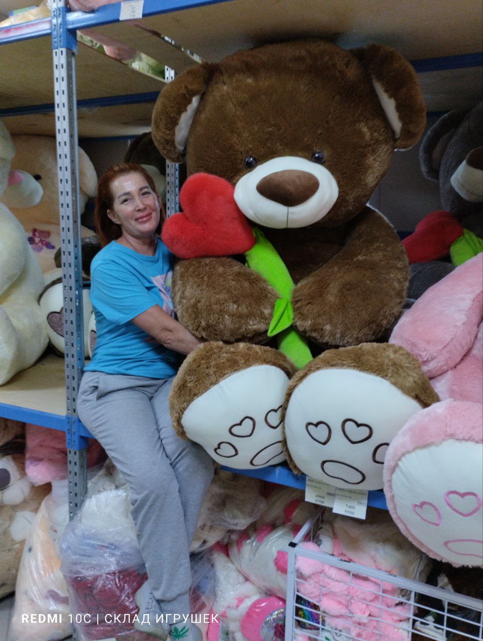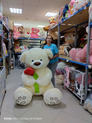 Мишка огромный мохнатый молочный с цветком-сердечком