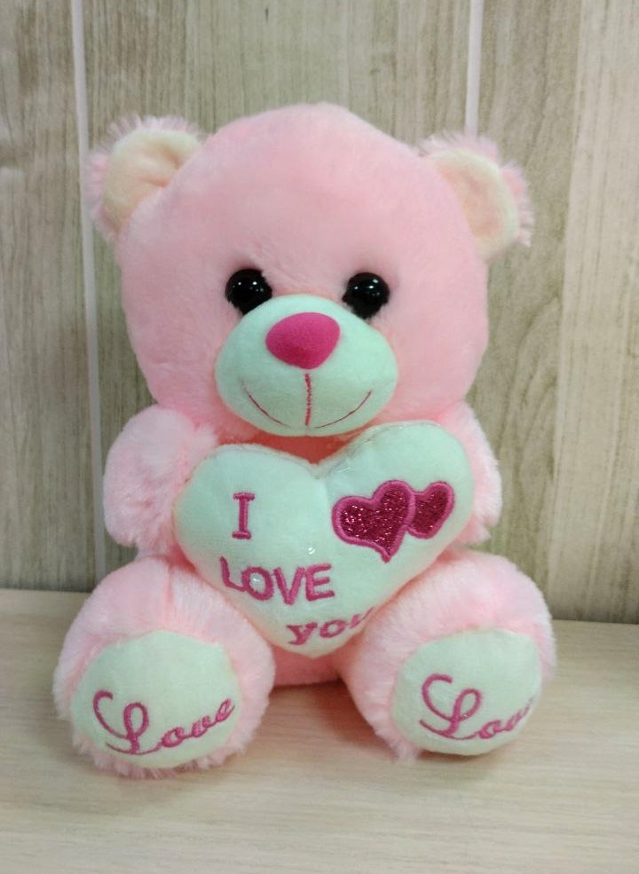 Мишка розовый с белым сердечком 20 см.