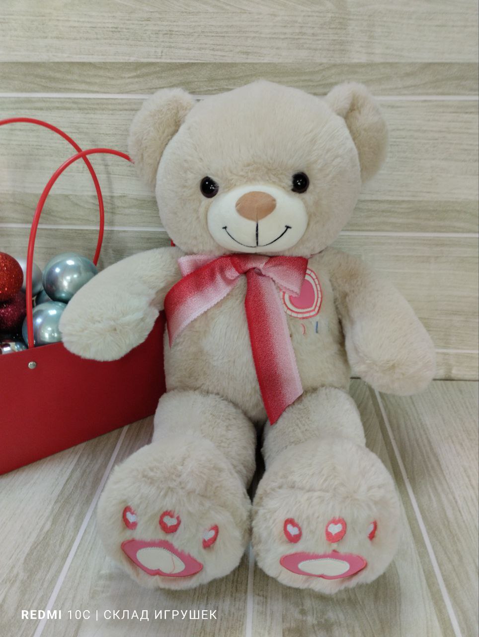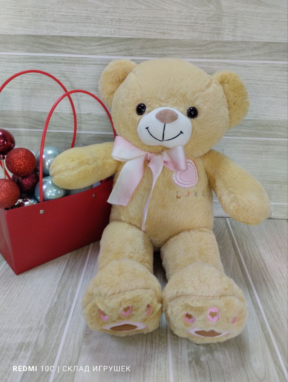 Мишка с лентой и вышивкой 3 цвета 55 см.