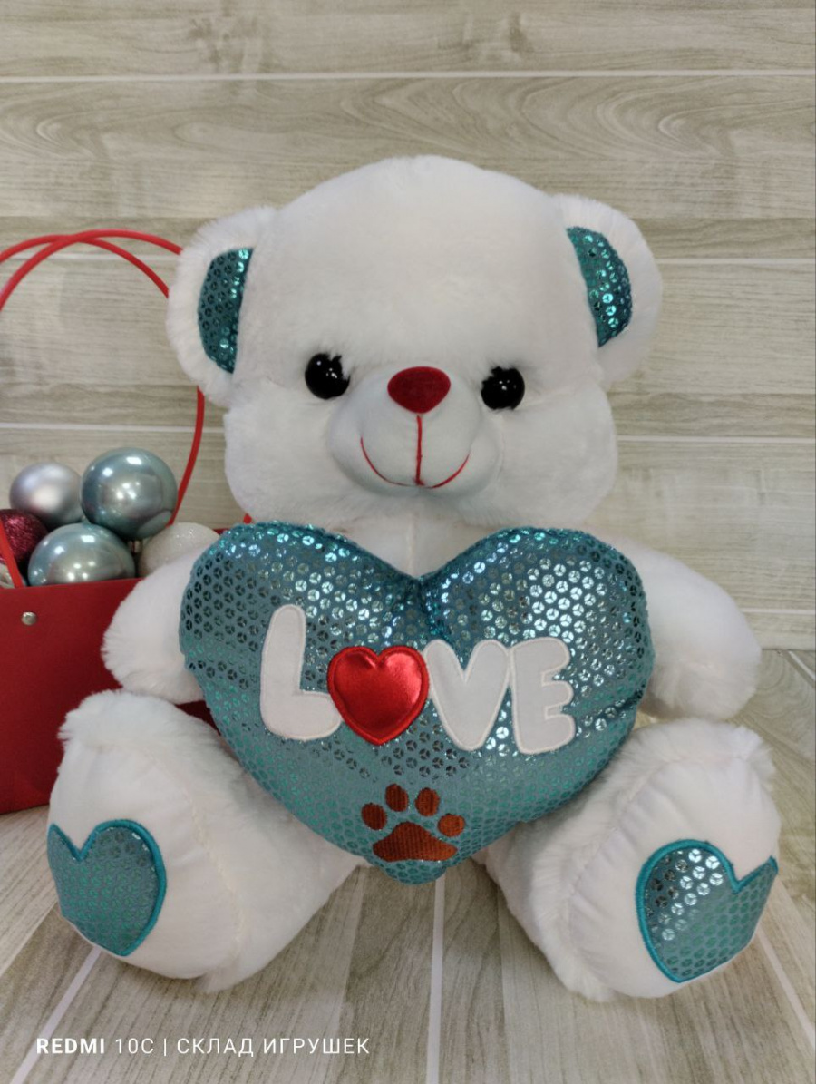 Мишка с зеленым сердцем мал 38 см.