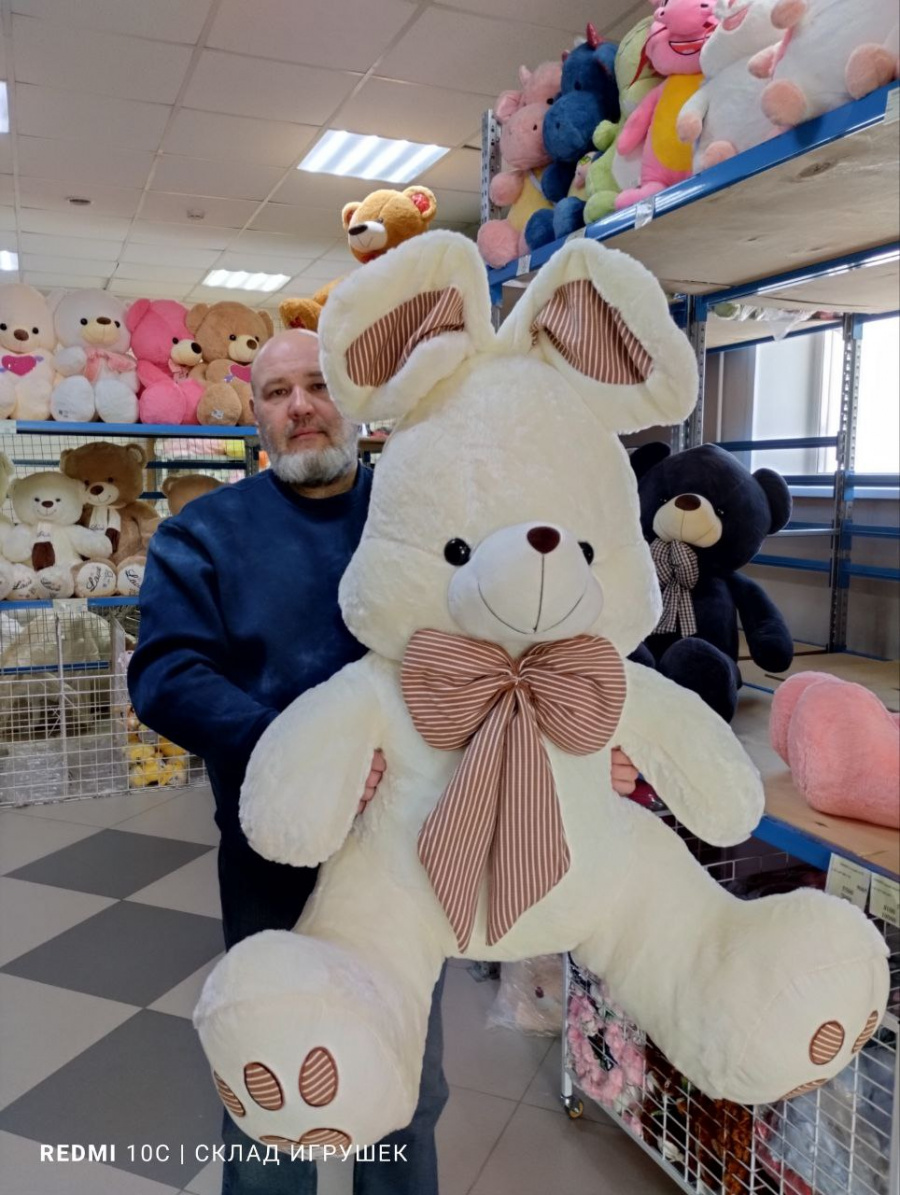 Заяц белый с бантом в полоску (90 см спина)