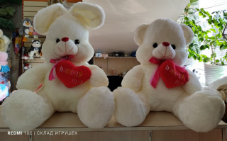 Заяц белый с красным сердечком и лентой
