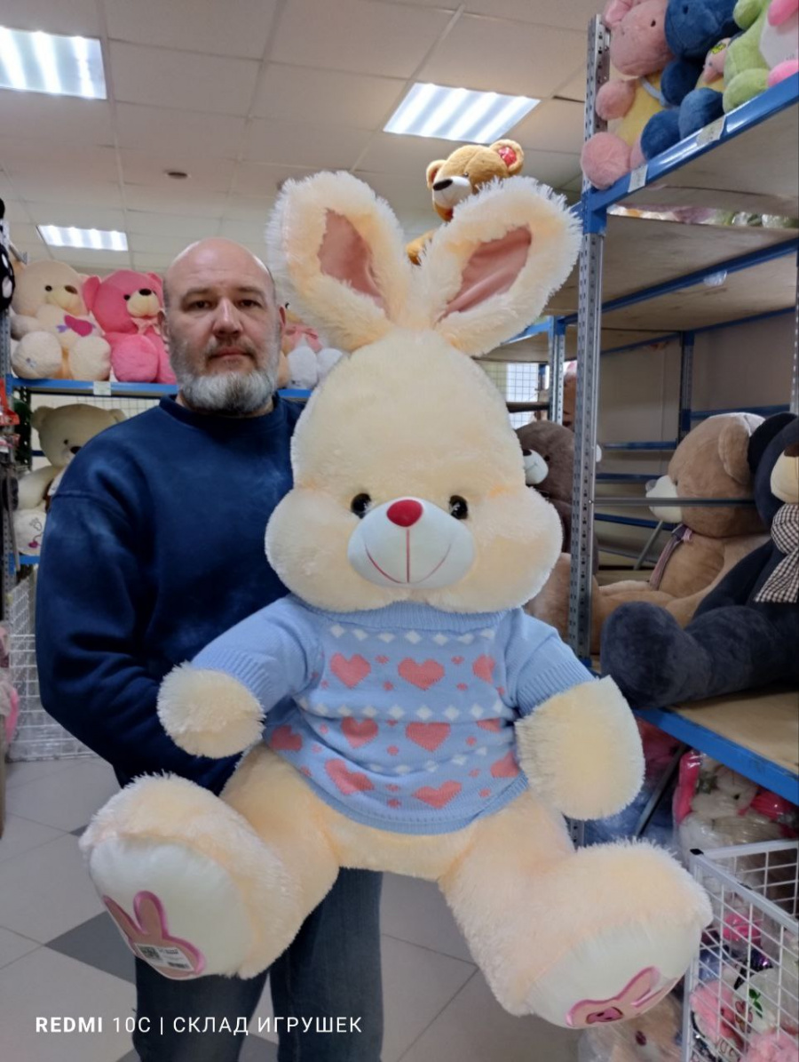 Заяц мохнатый с кофте 65 см спина