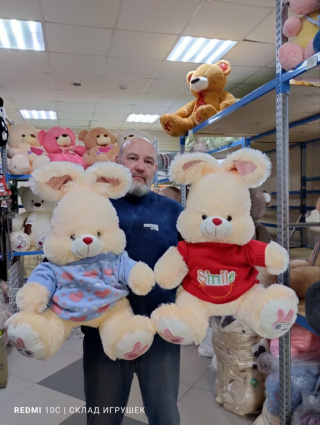 Заяц мохнатый в кофте (2 цвета) 50 см спина