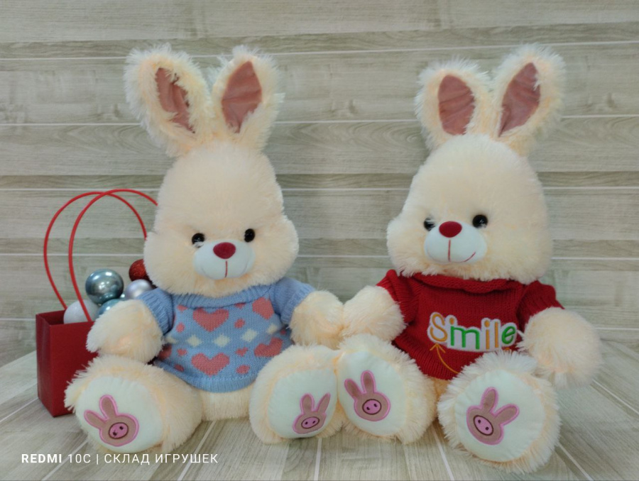 Заяц мохнатый в кофте 40 см