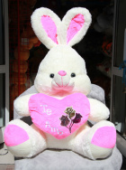 Заяц белый с розовым блестящим сердцем 70 см - Цена: 1 400 руб. (розница)